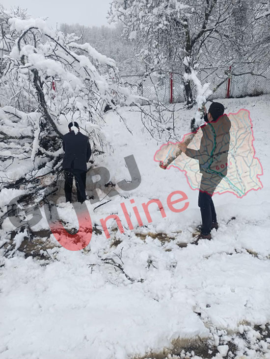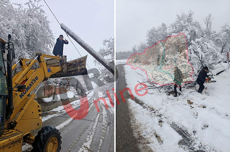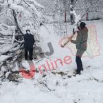 Autoritatea locală din comuna Brănești a intervenit în această dimineață după ce mai multe drumuri au fost acoperite de zăpadă, traficul fiind îngreunat. Urcați pe un utilaj, cu care se curățau drumurile, s-a încercat ridicarea unui stâlp care se aplecase amenințător spre carosabil, fiind ținut doar în fire. De asemenea, nu s-au îndepărtat de pe carosabil mai mulți copaci rupți sub greutatea zăpezii.