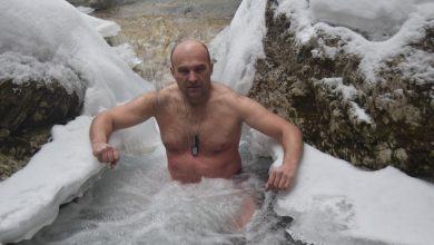 FOTO Gorjeanul care a făcut baie în apa înghețată a Oltețului. Este o tradiție pe care o respectă în fiecare an