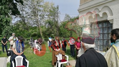 Biserica din Cartiu: Sfânta Liturghie, afară, cu credincioșii la distanță și cu măști pe față!